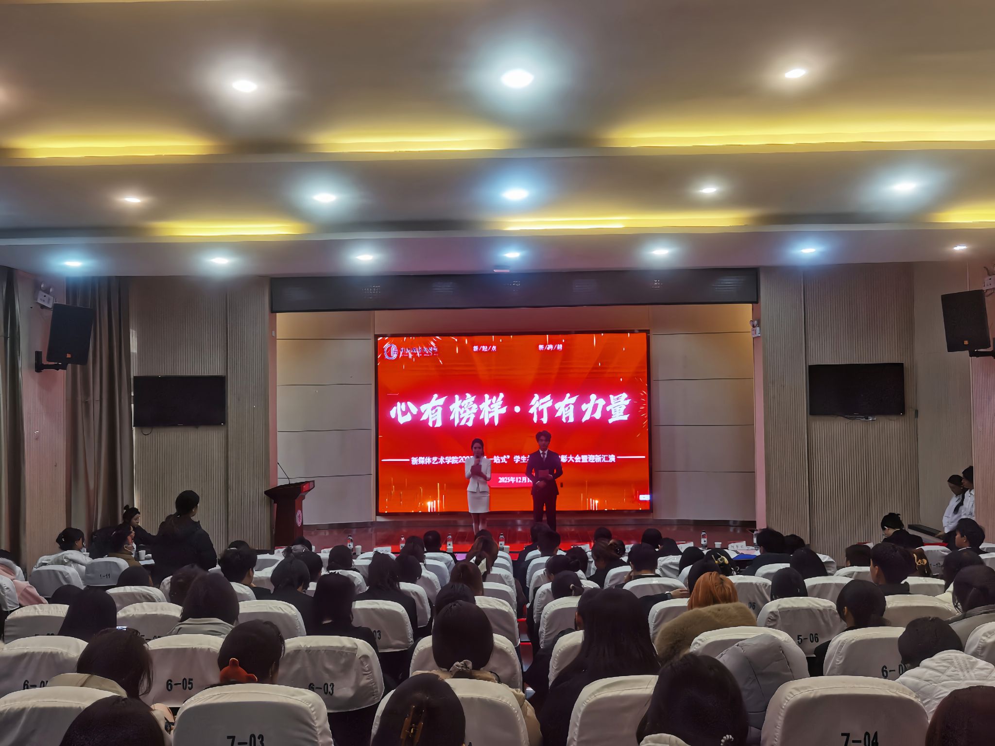 为表彰先进典型,凝聚榜样力量,欢迎2025级新同学融入学院大家庭,12月10日下午,我院2025年“一站式”学生社区“心有榜样 行有力量”学生表彰大会暨迎新汇演在金花校区西纺报告厅隆重举行。学工部副部长、学院领导班子成员、各系负责人、研究生导师代表、教师代表、全体辅导员与受表彰学生及2025级同学共同参会,大会由郝星凯、郭奥涵主持。