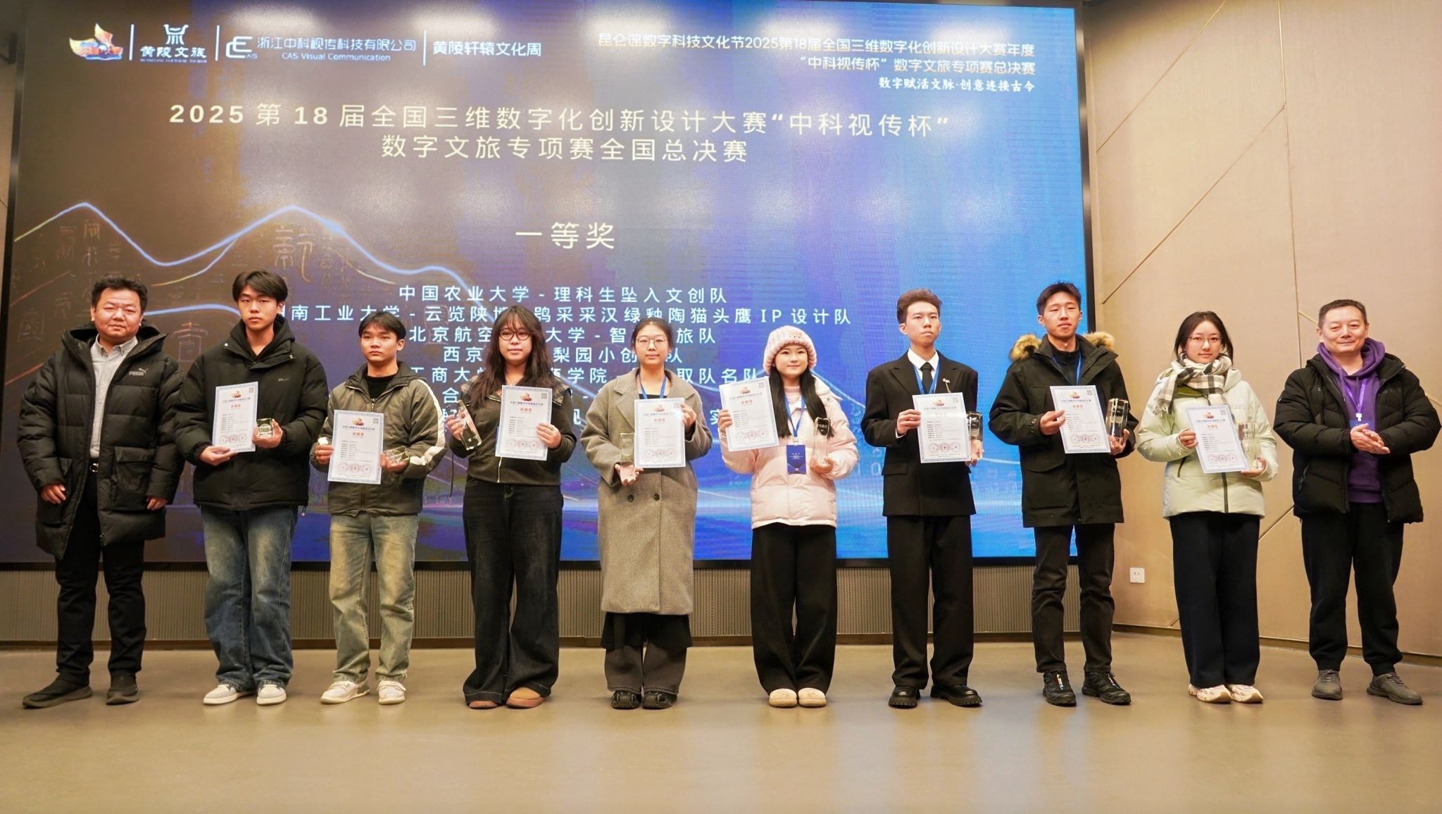 2025年12月21日,在第十八届全国三维数字化创新设计大赛“中科视传杯”数字文旅专项赛全国总决赛中,我院研究生陈淼团队作品《轩辕造物》获龙鼎奖一等奖,并被延安市黄陵县中华始祖堂以常展展品的形式正式留展,作为数字文旅创新成果在国家级文化空间中持续展示。